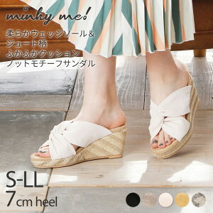 【あす楽】【8月3日9:59まで500円OFFクーポン】【送料200円】minky me ミンキーミー サンダル レディース ウェッジソール 厚底 ミュール 7cm ヒール ジュート 大きいサイズ 小さい ブラック 黒 グレージュ アイボリー レッド パイソン柄 リゾート 旅行