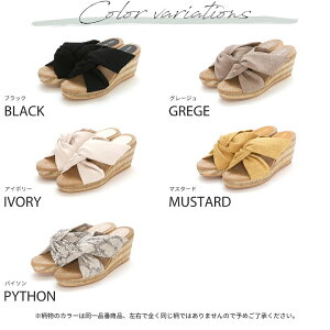 〜履きやすさのポイント〜 ・屈曲性のある柔らかウェッジソール ・足が痛くなりにくく疲れにくいジュート柄のふかふかクッションインソール ・高さを感じにくいウェッジソールで安定して履きやすい ・ミュールデザインで脱ぎ履きラクチン♪