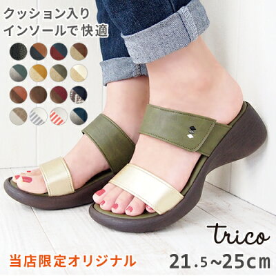 サンダル レディース ウェッジソール ダブルベルト バイカラー MTRC11A1 trico トリコ 当店限定 | コンフォート クッション 春 夏 ミュール つっかけ 玄関 歩きやすい 幅広 おしゃれ 痛くない 疲れない 白 ゴールド