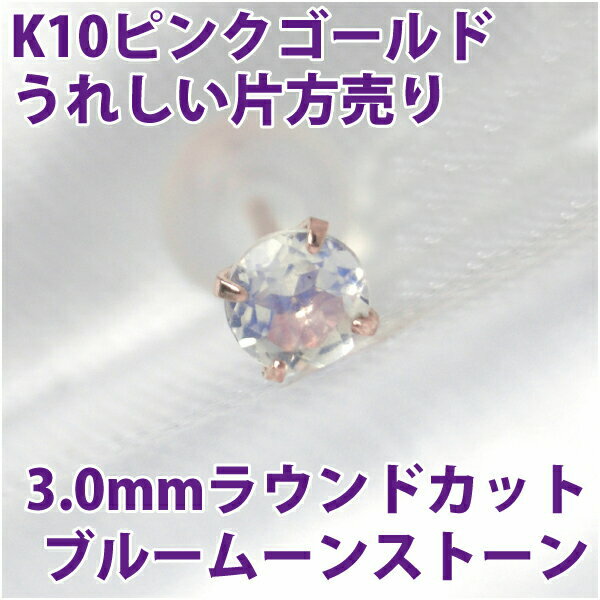 ブルームーンストーン ピアス K10 ピンクゴールド 3mm 片耳用 6月 誕生石 定番 スタッド 10Kfourm クリスマス 母の日 レディース メンズ 男性 女性 ラッピング 包装 袋 誕生日 プレゼント ケース 箱 華奢 可愛い おしゃれ 手紙 ギフト 記念日 お揃い 母
